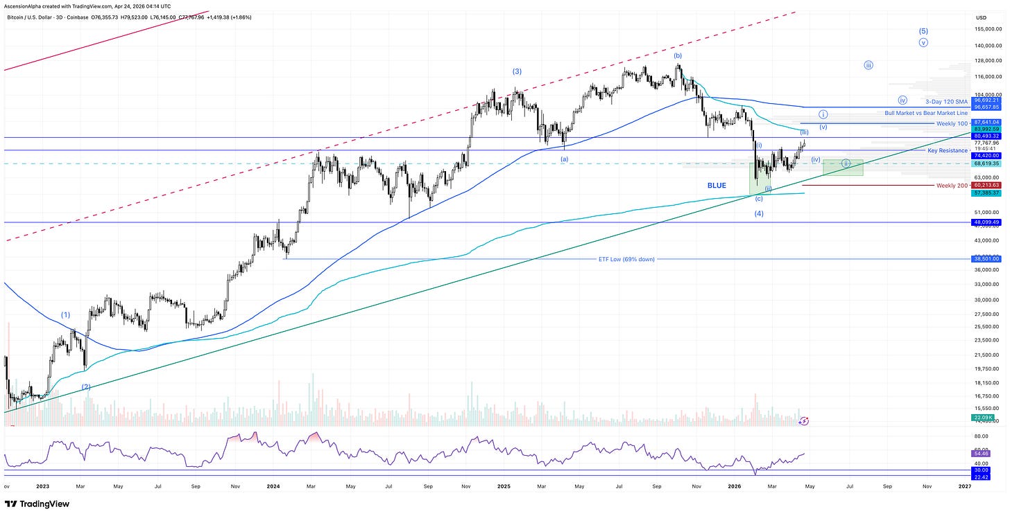If the low is indeed in, this would likely represent the fifth and final wave of the bull market that began in 2023. It would likely resemble the July to November 2021 move, a 50 percent plus correction, a sharp recovery to new highs, and a relatively swift top shortly thereafter. That would create a classic max pain scenario for both bears waiting for lower prices and bulls expecting a massive breakout.