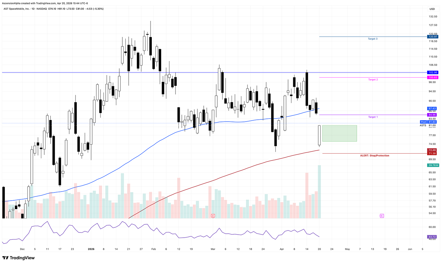 My primary target on ASTS is the horizontal resistance at 100, with a move into new all-time highs as Target 3 if momentum really kicks in.